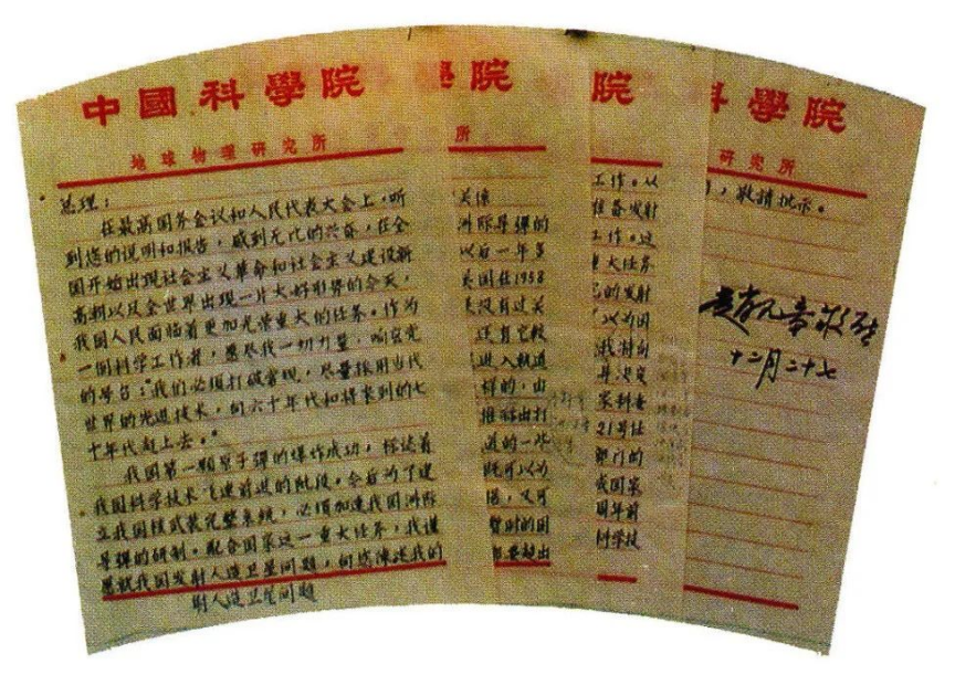 1964年,赵九章写给周恩来总理的亲笔签名信