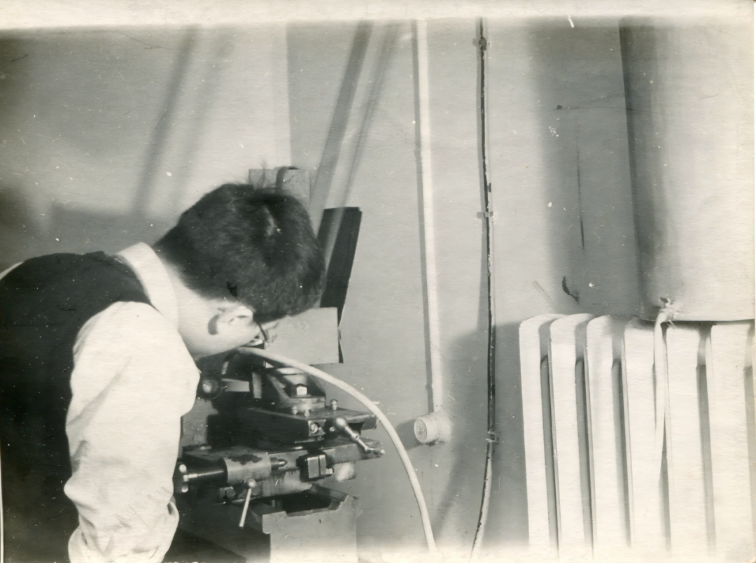 1956-1959年期间,潘君骅留学苏联时在光学工厂实习
