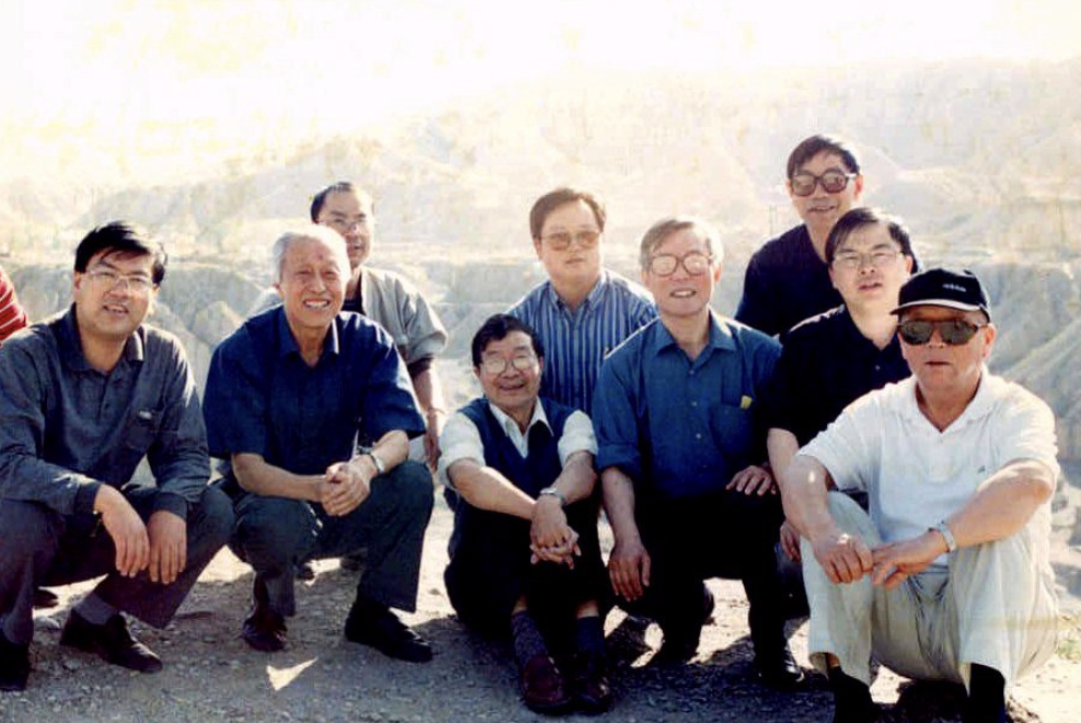 1986年,李庆忠(1排左3)在玉门油田石油沟高坡上