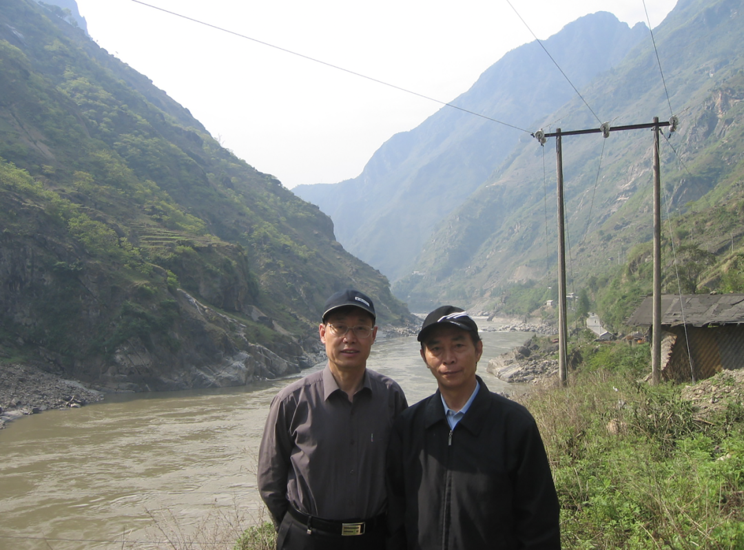 2005年,张楚汉(右)和索丽生考察怒江水系