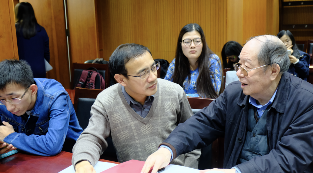 2017年,王崇愚(右1)在“第五届全国自然科学哲学问题学术研讨会”上与其他学者交流
