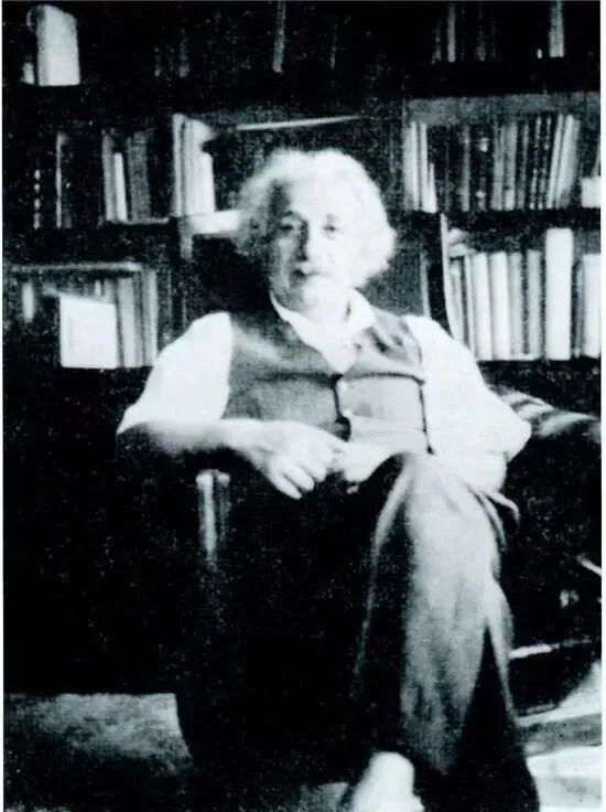 照片中,爱因斯坦坐在转椅上,将左脚搭在右腿上,双眼凝视着前方,这也是一张中国科学家为爱因斯坦拍摄的珍贵照片。