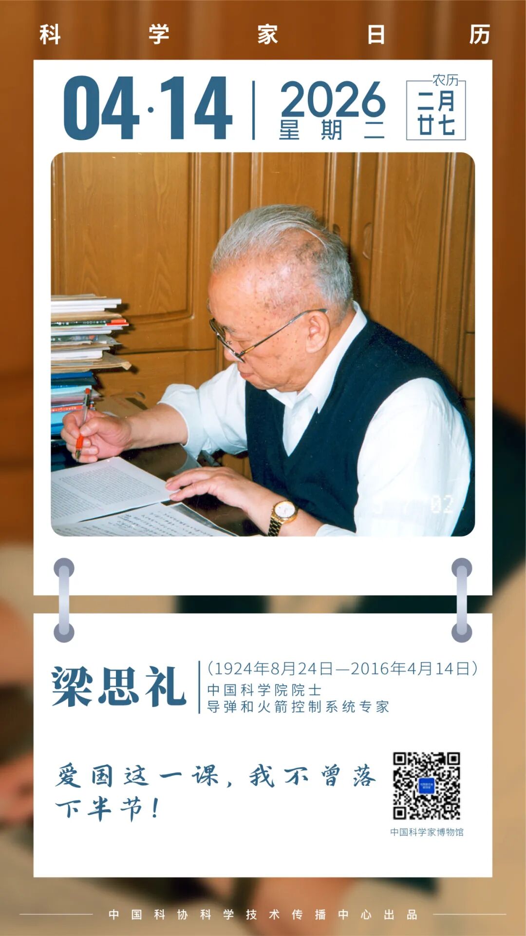 2026年4月2日,在黄旭华院士诞辰百年之际,由中国科协主办的“潜行与抉择——共和国功勋黄旭华百年人生瞬间”专题展在中国科学家博物馆正式开幕。黄旭华院士之女、中国科学家精神宣讲团成员黄峻,以及来自中国科协科学技术传播中心、中国科学家博物馆、湖北省科协、国家国防科技工业局新闻宣传办公室、中国船舶集团有限公司新闻宣传中心、中国船舶报社、中国船舶集团有限公司第七一九研究所等单位的代表共同出席了开幕式。庆祝航天事业创建70周年——张履谦“翰墨颂航天”专题展正式开展