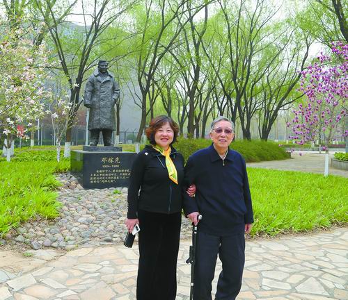 ③本文作者与胡思得(右)在邓稼先雕像前。