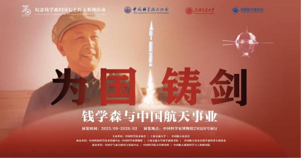 1949年中华人民共和国成立之后,党中央高瞻远瞩、审时度势,做出发展以“两弹一星”为核心的国防尖端科学技术的决策。1955年,钱学森满怀爱国热情,冲破藩篱,毅然归国,投身火箭、导弹、人造地球卫星等尖端技术的研制工作。2025年是钱学森同志归国七十周年。为进一步学习贯彻习近平总书记关于大力弘扬科学家精神的重要指示,讲好钱学森故事,回应公众对高质量科普日益增长的需求,中国科学技术协会、上海交通大学、中国航天基金会共同策划《为国铸剑:钱学森与中国航天事业》专题展览。展览面积约800平方米,内容基于钱学森图书馆基本陈列演进,依托上海交通大学钱学森图书馆的学术研究与档案史料征集成果,选取馆藏70余幅照片、近80件(套)实物展品,通过六个单元、近100组展项,系统展示在中国共产党领导的新中国科技事业伟大征程中,钱学森作为中国火箭、导弹和航天事业的技术领导人,精心组织攻关会战,为“两弹一星”事业的成功与中国航天事业的创建起步,建立的卓越功勋,展现其“党有所呼、我有所应,国有所需、我有所为”的崇高精神风范,以此激励广大科技工作者为加快建设科技强国、实现高水平科技自立自强,奋斗不息。