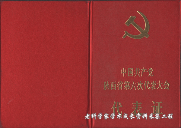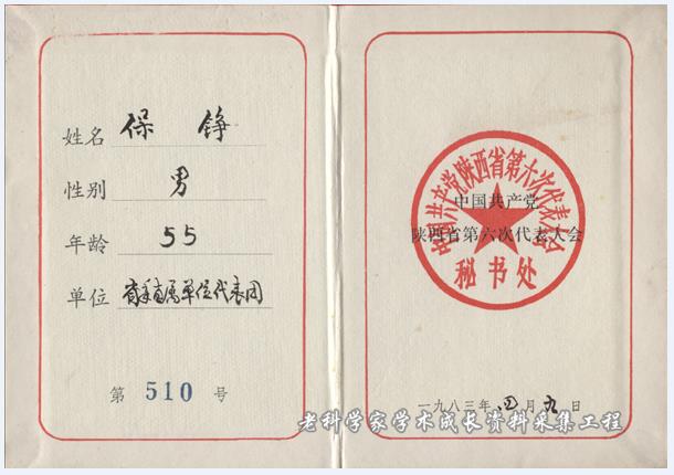1983年4月9日,保铮参加中国共产党陕西省第六次代表大会时的代表证。