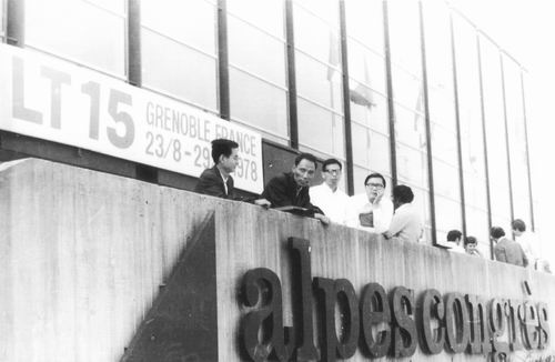 ①1978年,龚昌德(左二)在法国参加LT15会议,与管惟炎(左一)、张其瑞(左三)合影。