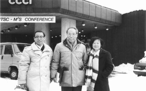 ②1988年,龚昌德(中)于瑞士参加HTSC会议,与王芝音夫妇合影。
