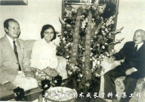 1991年9月祝贺苏步青九十寿辰,谷超豪、胡和生与苏步青合影