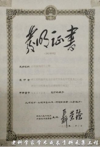 1965年2月10日“液相法制造全氟油”获国家创造发明奖的证书