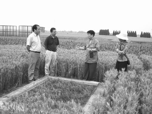③2008年5月17日,刘昌明(右二)在栾城站小麦实验田考察。