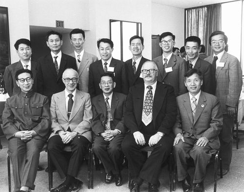②1978年,刘昌明(后排左一)与黄秉维(前排中)、吴传钧(前排左一)等地理学家一起访美。