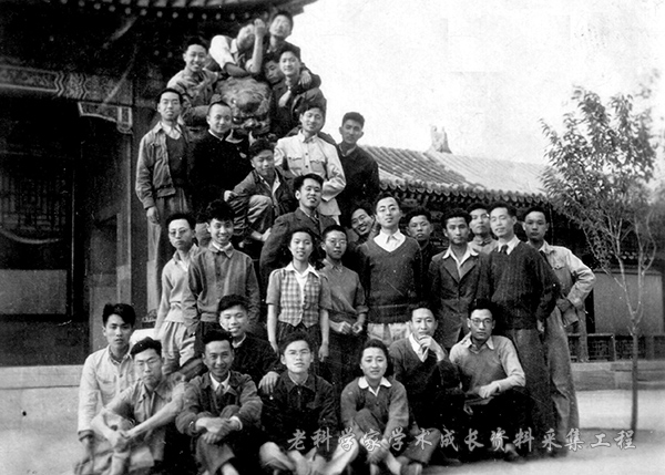 1949年,清华大学任助教时与一年级学生合影,从右向左(均为老师):坐3为何成钧,蹲1为章士敢,蹲2为洪川诚,站1为慈云桂,站4为吴全德,站6为陈篪,站7为李德平,站9为金建中。