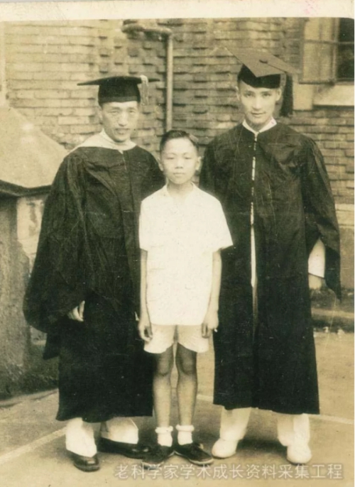 李乐民随父亲李庆贤(左)到东吴大学参加1945年毕业典礼