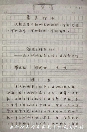 20世纪60年代末写作的论层子模型(一)(二)(三)(四)手稿。(图片由陆谈夫人周精玉提供)