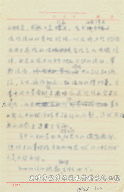 图为1982年1月邵象华写给冶金工业出版社有关《金属冶金过程中的流体流动现象》译著出版意见草稿。文中对东大副教授肖泽强和上海工大徐匡迪同志合作翻译的美国麻省理工学院J.Sjekely教授的专著《金属冶金过程中的流体流动现象》进行评价,并推荐出版社出版该译著。
