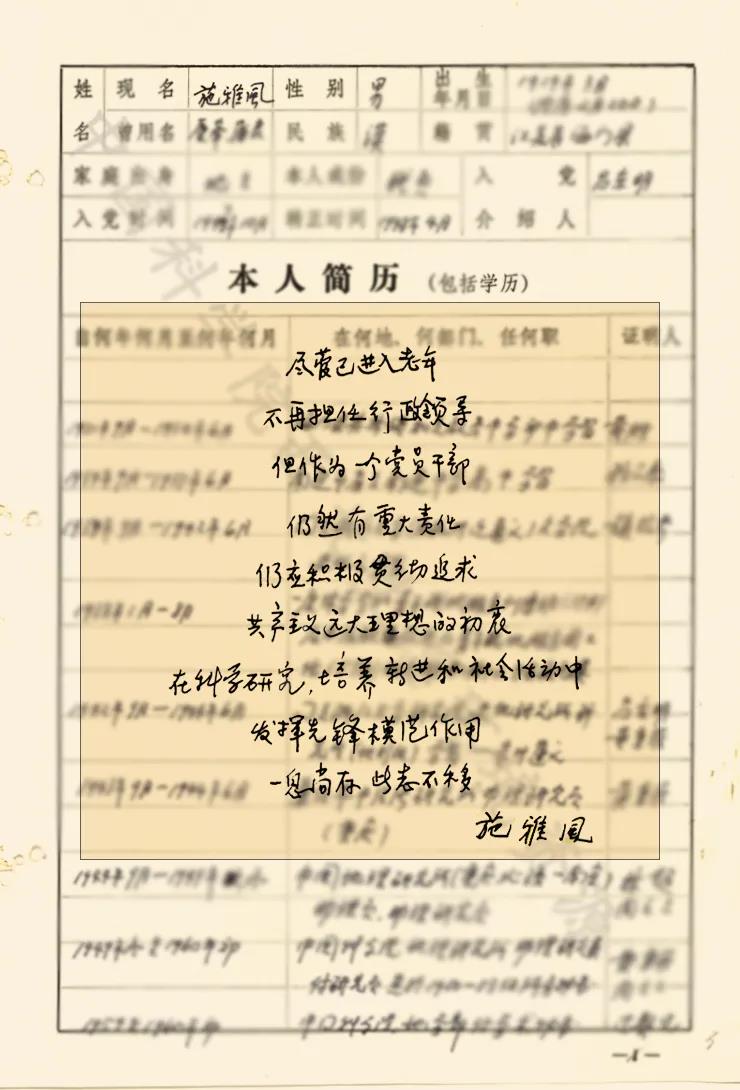 ——(摘自施雅风1985年11月《中国共产党党员登记表》)