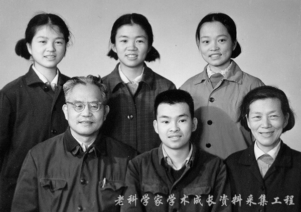 1978年吴文俊全家福(后排左边起大女儿吴月明、二女儿吴星稀、三女儿吴云奇、前排左边起吴文俊、儿子吴天骄、夫人陈丕和。)