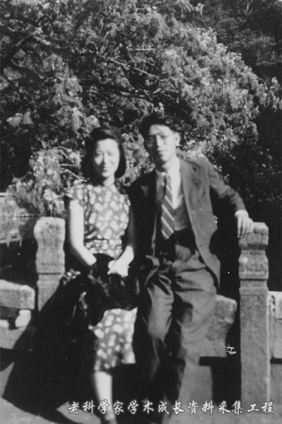 1944年,谢家麟与妻子在昆明黑龙谭前留影。