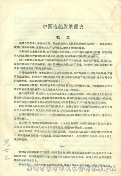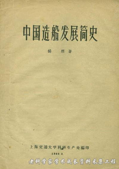 图为1962年3月杨槱所著《中国造船发展简史》。