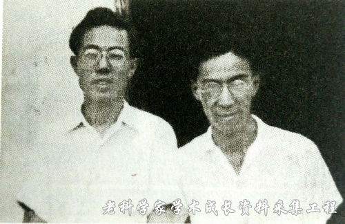 1946年赴美留学前与大弟张养生(左)在无锡老屋前合影