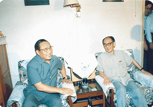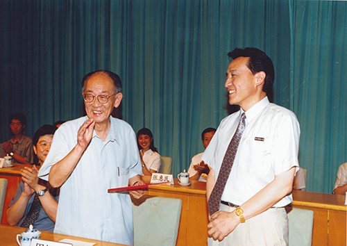 1986年,周炯槃(左一)出席北京邮电大学信息工程学院成立大会
