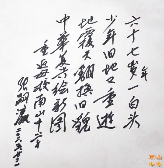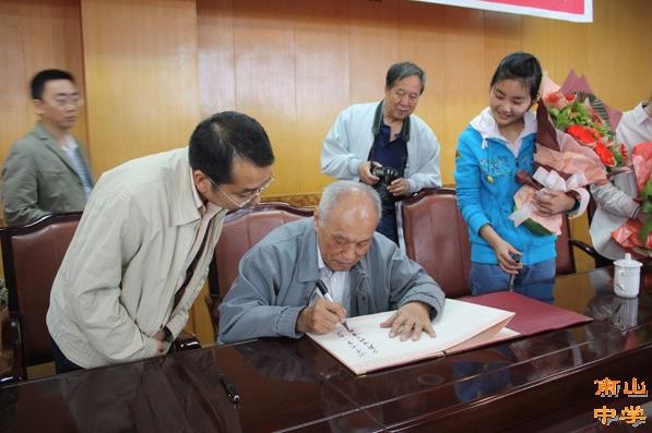 回访期间,张嗣瀛参观了校园,当张老看到那古朴芬芳的古银杏、玲珑剔透的假山巨石、高大气派的教学楼时显得格外兴奋。张老为母校重视学生素质教育,以“博学、审问、慎思、明辨、笃行”的教育理念,为国家培养了一大批精英人才感到十分欣慰。南山中学部分参加奥林匹克竞赛的高中学生与张老互动交流,现场聆听了这位慈祥、睿智老人的谆谆教诲。