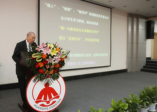 钟世镇发表讲话。他说,黄河科技学院本着 “帮助和爱护没有机会上学的孩子们”这一初衷办学,自力更生艰苦创业发展到今天拥有大的影响力,缘于学校有很好的创业精神。钟世镇称,学校的办学理念是“敢为天下先”。黄河科技学院正是在对传统文化的“在批判中传承、在传承中创新、在创新中发展、在发展中超越”的实践中,一步步发展壮大。他说,今天来到学校后,感受到学校学生的精神状态特别好。国家现在提出的“全民健身”“医疗社区服务、基层服务”,我相信是依靠黄河科技学院这样的学校培养出来的学生去实现的。钟世镇表示,黄河科技学院有非常正确的发展方向和很好的发展前景,非常高兴能够成为学校的一员。