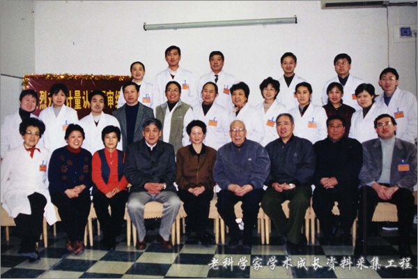 2002年,国家药物及代谢产物分析研究中心工作人员与计量认证评审专家合影(前排左六为周同惠)。