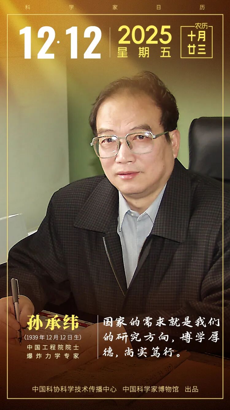 孙承纬毕生致力于爆炸力学基础理论研究与工程应用创新,为我国国防安全和民用爆破工程发展立下不朽功勋。他牵头攻克核武器爆轰物理关键技术难题,构建我国自主化爆炸力学测试体系;主导工业爆破安全控制技术研发,推动民用爆破行业向绿色高效转型;培养了大批爆炸力学领域顶尖人才。