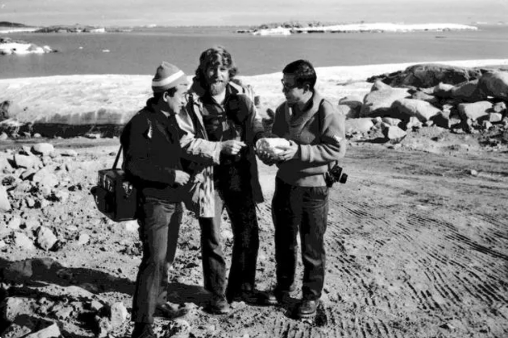 1980年1月12日董兆乾(左1)、张青松(左3)和澳大利亚南极局长麦克尔(左2)等从新西兰南岛飞往南极麦克默多前合影 来源丨中国科学报 按照计划,南极考察的时间是2个月,出发的日子也近在眼前。 考虑到时间紧迫,董兆乾和张青松抓紧时间准备,他们广泛阅读与南极有关的资料并准备了相关科考器具。张青松在查阅资料时了解到南极科考充满风险,甚至有性命之虞。临行前,张青松在给党支部的信里写下这样一段话:“此次南极之行,我一定努力争取最好的结果,顺利归来。万一我回不来,请不要把我的遗体运回,就让我永远留在那里,作为我国科学工作者第一次考察南极的标记。” “不完成任务誓不回还”,董兆乾和张青松带着这样的决心,开始了南极考察之旅。 1980年1月12日,董兆乾和张青松乘坐大力神飞机抵达南极,成为“我国第一个登上南极的科学家”。 说起飞机降落的那一刻,董兆乾至今记忆犹新:“要说不怕,那是骗人的,极地气候恶劣,变化无常,想到我们的飞机要在一块浮冰上降落,心里总有点发怵。” 而飞机降落只是开始,在南极大陆,每走一步,甚至每说一句话都充满艰险。极地暴风雪来临时,考察站内可以清晰地听到外面暴风呼啸。大风卷起巨型石块,打在建筑外墙上,像在开机关枪,感觉到房子摇摇欲坠。 但是董兆乾和张青松不顾危险,没日没夜地边考察边学习,最终完成了对南极地质、地貌、冰川、湖泊、水文和动植物的细致考察,还对南极建筑物、考察队的现场运行、考察队员的衣食住行、安全保障、冰雪世界的交通运输、通讯联络等,进行了详细、认真的记录。 董兆乾(左)、张青松(右)和 澳大利亚南极局副局长诺尔斯·克里博士 在南极洲凯西地区考察南极岩石的分布特点 来源丨新华网 他们除了主访凯西科考站外,还访问了澳大利亚和新西兰的南极局,参观了两国的南极博物馆,收集了有关南极考察的大量参考材料。回国后,两人向国家提交了5万多字的综合考察报告…… 董兆乾和张青松的首次南极科考,为我国组织南极考察、派出首支南极考察队和制定建立南极考察站计划,打下了坚实的基础。此后,我国南极科考迎来了一个又一个辉煌成果,一批批中国科学家不顾艰险,前赴后继,取得了一系列惊人的成绩: 1984年10月8日,我国第一支南极考察队成立。 1985年2月20日,中国第一个南极科考站——长城站落成。 1989年2月,中国南极中山站建成。 2004年12月12日,中国第21次南极考察队13名队员驾驶4辆雪地车,拉着100多吨的物资,开始了中国第4次南极内陆考察。 2009年1月,中国南极昆仑站建成。 2014年2月8日,中国南极泰山站胜利竣工,成为中山站和昆仑站之间的中转枢纽站。 2019年10月,中国自主建造的第一艘极地科学考察破冰船“雪龙2”号首航南极。 2024年2月7日,中国南极科考事业迎来了新的里程碑——秦岭站正式启用。