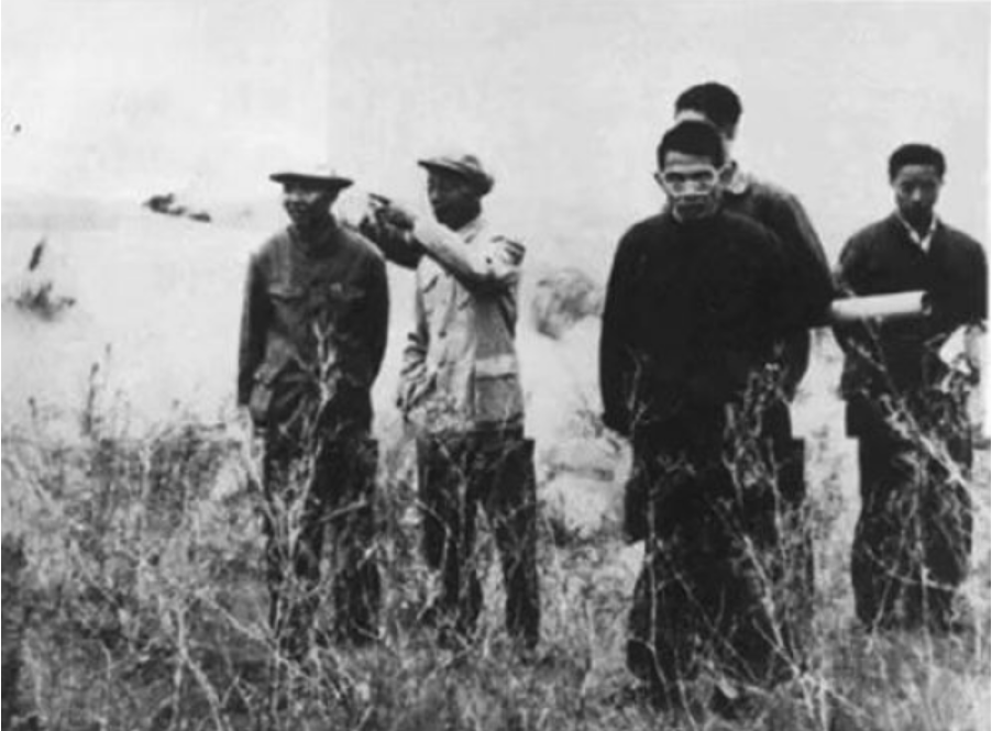竺可桢(左2)在宁夏视察沙坡头地区植物固沙试验基地