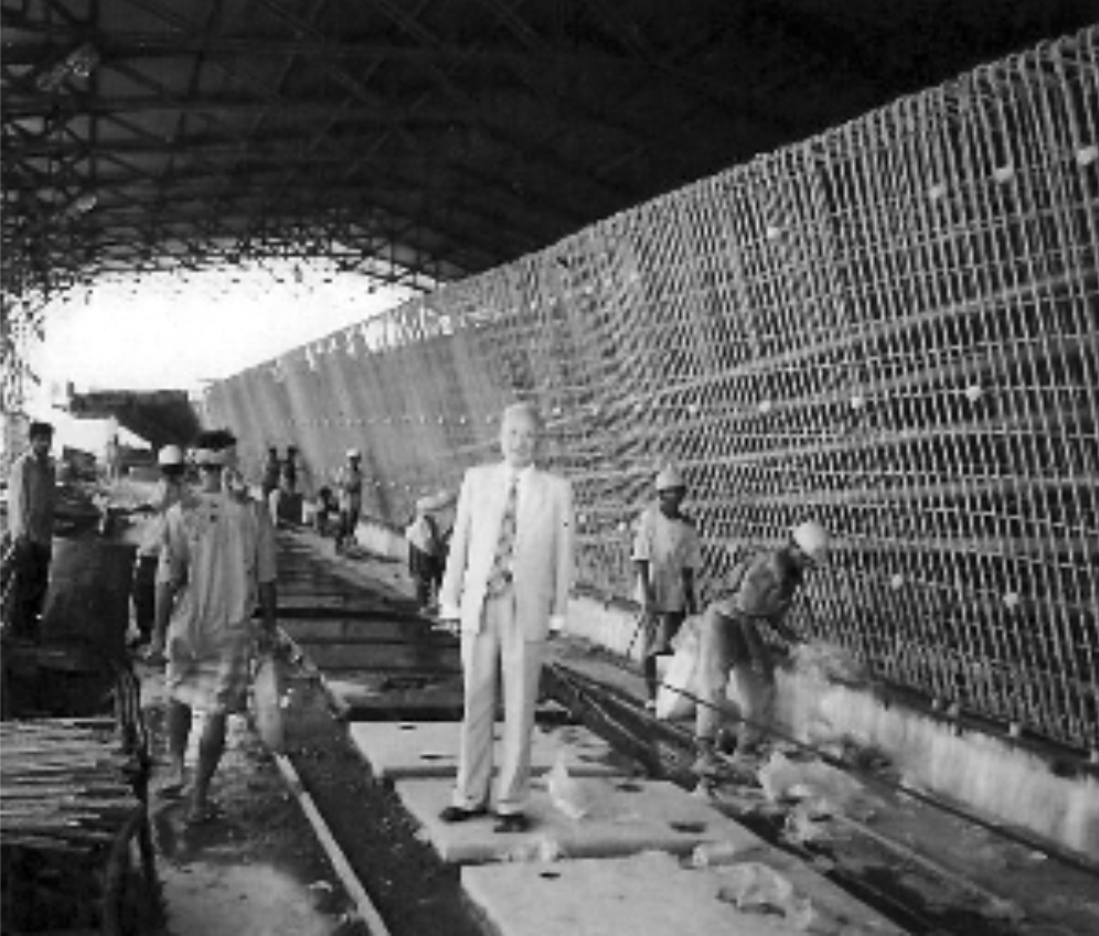 丁大钧在印度孟买近郊桥梁工地钢筋厂