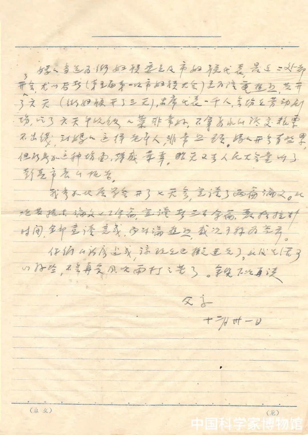 一纸家书,一半是治学箴言,一半是骨肉温情。字迹虽经岁月略显潦草,可那份对科学的赤诚、对后辈的期许、对家国的担当,依旧穿越时光,熠熠生辉。